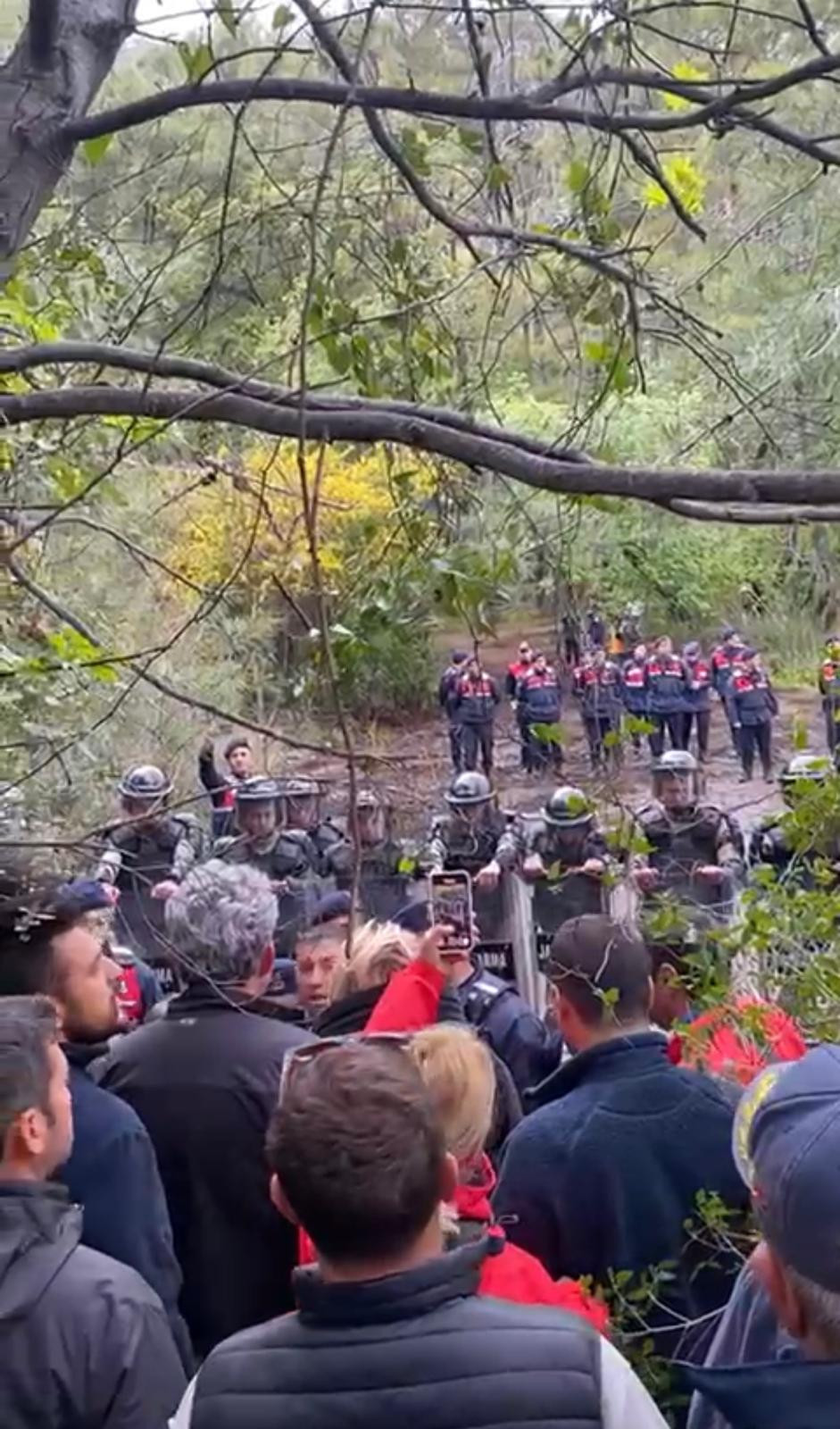 Jandarma ekipleri, koy girişine barikat kurarak vatandaşların karadan alana girişini engelledi. Bölgeye gitmek isteyen yurttaşların geçişine izin verilmezken, alanda geniş güvenlik önlemleri alındı. Deniz tarafında ise Sahil Güvenlik ekipleri devreye girdi. Tekneyle koya ulaşmak isteyen vatandaşlara müdahale edilerek denizden girişler de kontrol altına alınmaya çalışıldı.