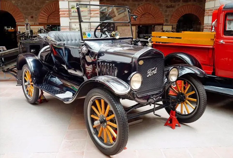 - 1908 model Ford Model T (Otomobil tarihinin en önemli kişilerinden biri olan Henry Ford ‘Model T’ yi 1908’de piyasaya sürmüştür. ‘Model T’ 1927’ye kadar, o zamana göre yeni kabul edilen seri üretim bandı prensibi kullanılarak, 15 milyon adetten fazla üretilmiştir. Müzemizde sergilenen araç ‘Ford T’nin 1918 üretimi bir “Runabout” versiyonudur.)