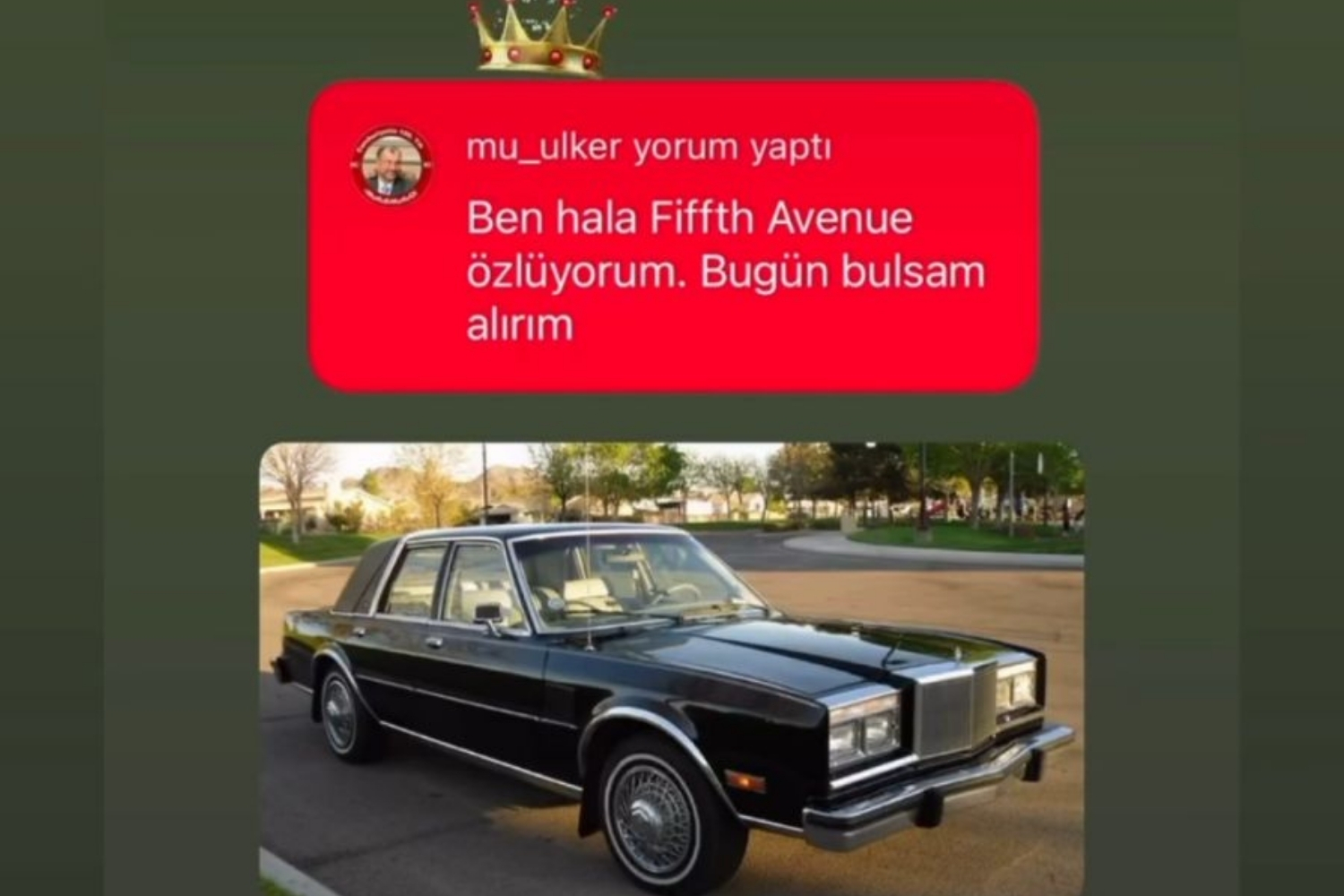 Murat Ülker’in paylaşımı akıllara efsane dizi Breaking Bad'deki eski polis memuru Mike Ehrmantraut’un ikonik otomobilini getiriyor. Dedektif Mike dizide Chrysler’in Fifth Avenue modelini kullanıyor. Yani Mike ve Murat Ülker’in ortak tutkusu Fifth Avenue.