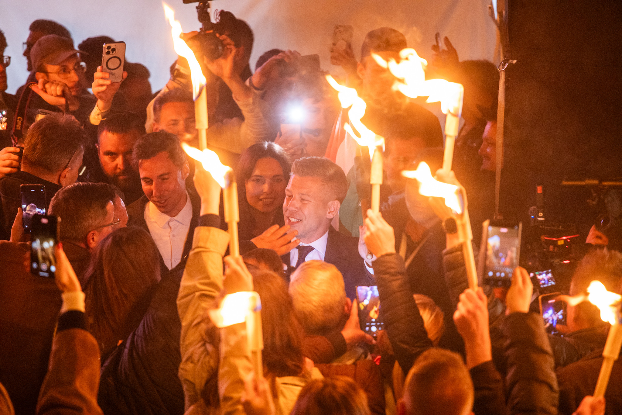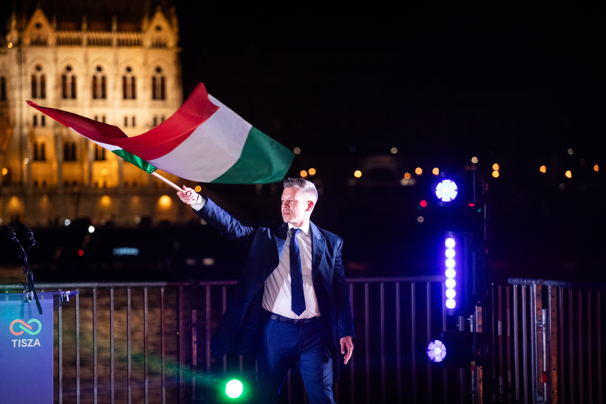 Bir adam sahneye çıkıyor. Peter Magyar...