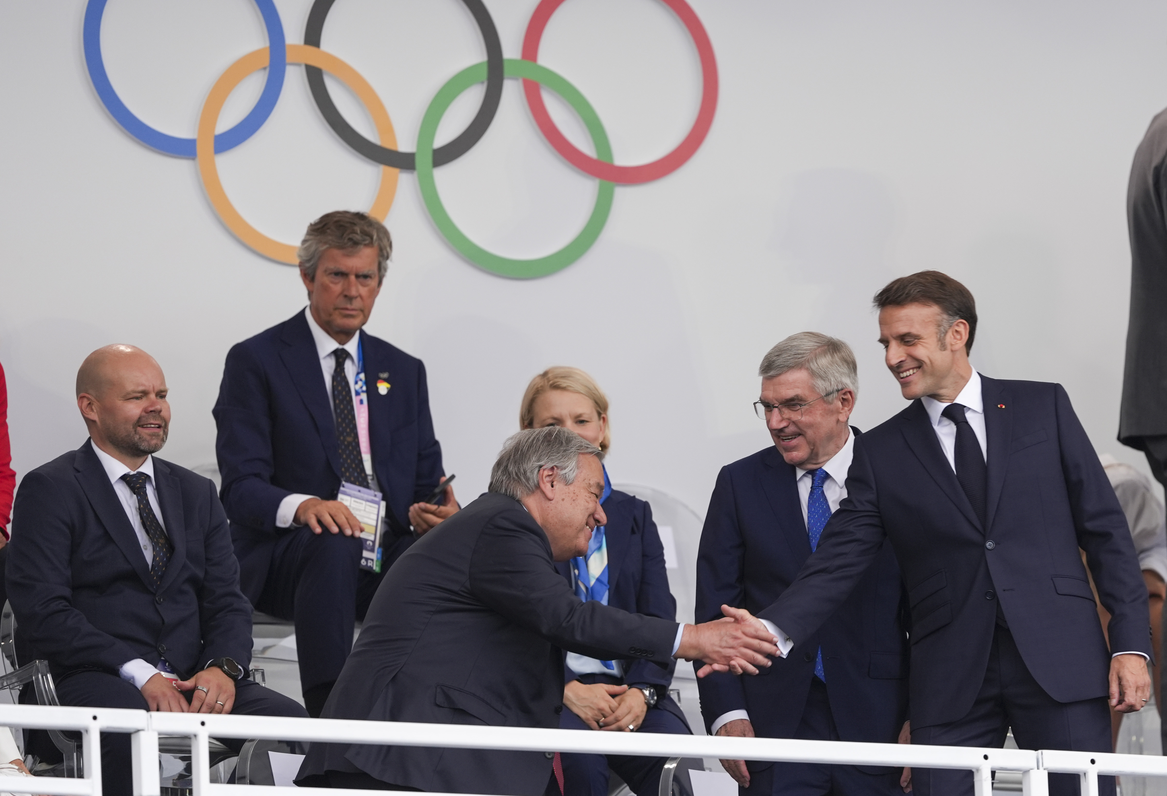 Birleşmiş Milletler Genel Sekreteri Antonio Guterres, Fransa Cumhurbaşkanı Emmanuel Macron, Uluslararası Olimpiyat Komitesi Başkanı Thomas Bach ile çok sayıda devlet adamı açılış törenine katıldı.