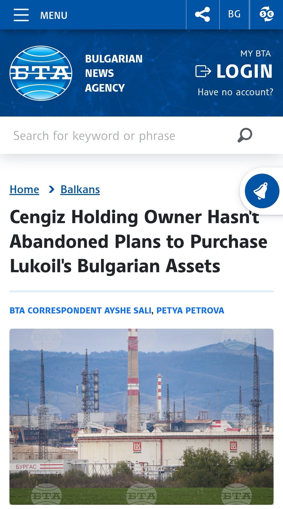Haberimizi referans gösteren yayınlar arasında yer alan Bulgaristan’ın resmi haber ajansı BTA, “Cengiz Holding’in sahibi, Lukoil’in Bulgaristan’daki varlıklarını satın alma planlarından vazgeçmedi” başlığını kullandı.