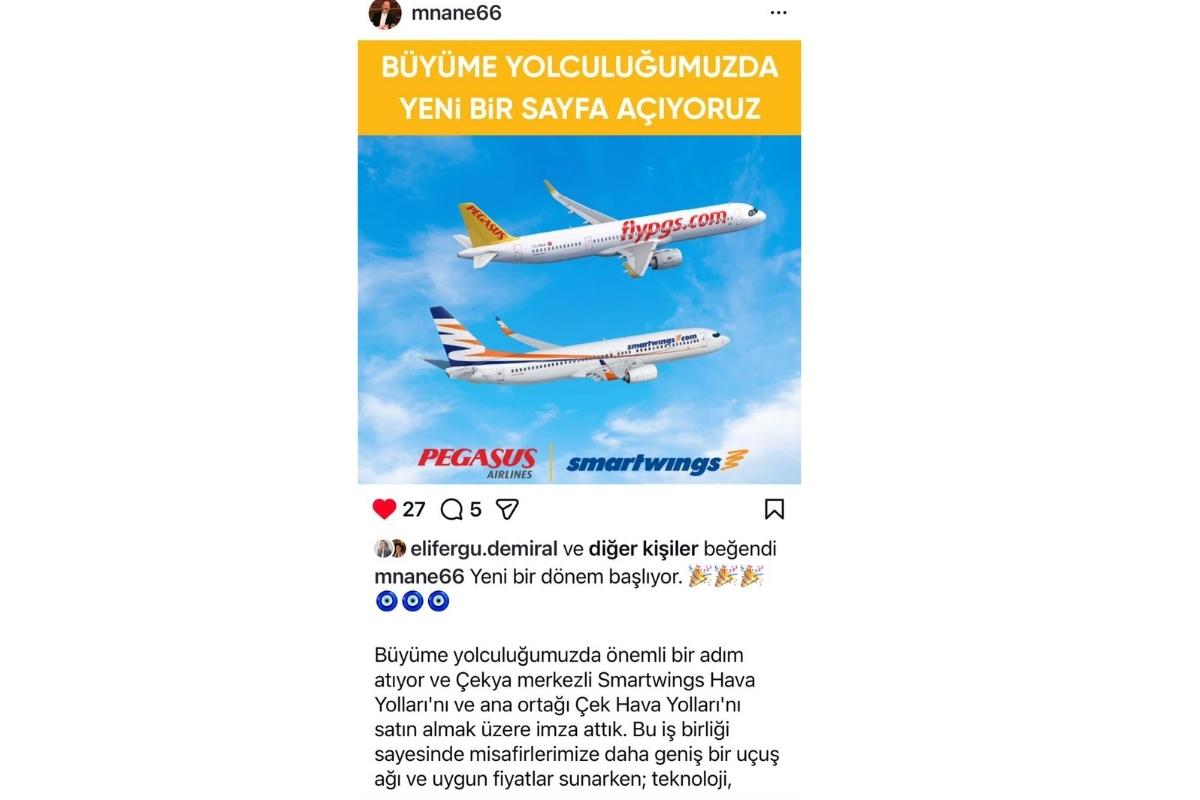 Pegasus Hava Yolları, küresel ölçekte faaliyetlerini genişletme hedefi kapsamında stratejik bir hamle yaparak Çekya’nın en büyük havayolu grubu olan Smartwings’i ve iştiraki Çek Hava Yolları’nı (Czech Airlines) satın almak üzere anlaşma sağladı. Kamuyu Aydınlatma Platformu'na (KAP) yapılan açıklamaya göre, Smartwings Grubu’nun sermayesinin tamamını kapsayan işlemin toplam bedeli, şirketlerin borçları da dahil olmak üzere 154 milyon euro olarak belirlendi.