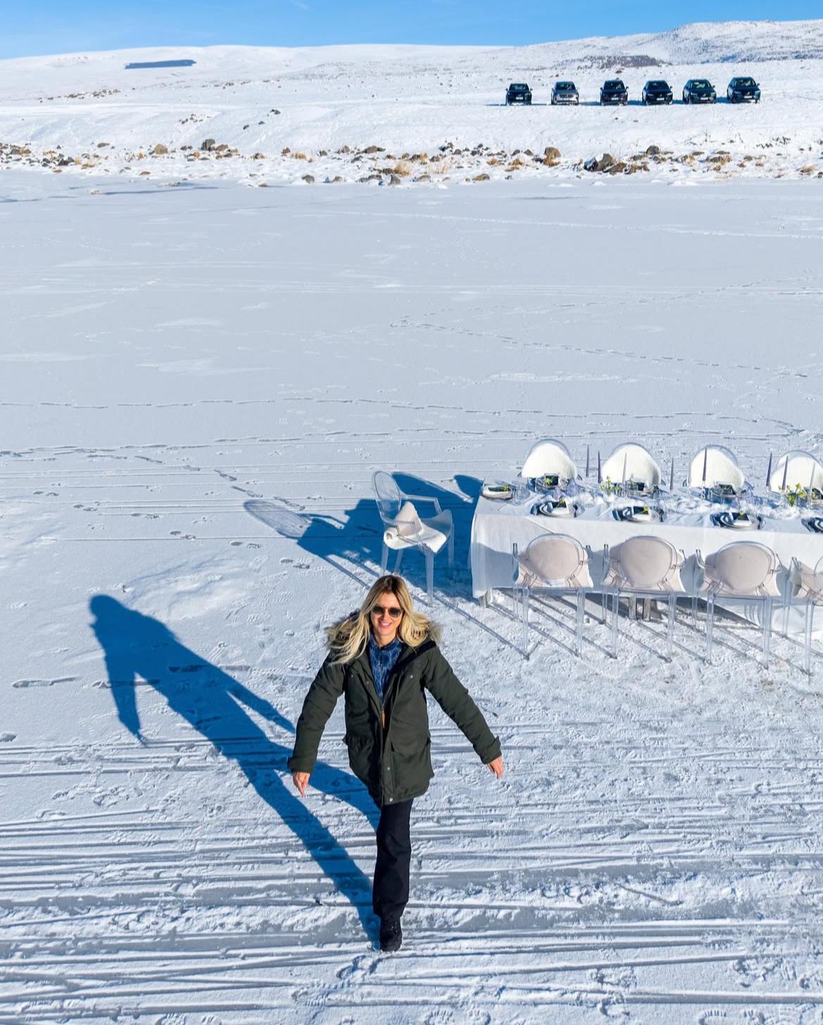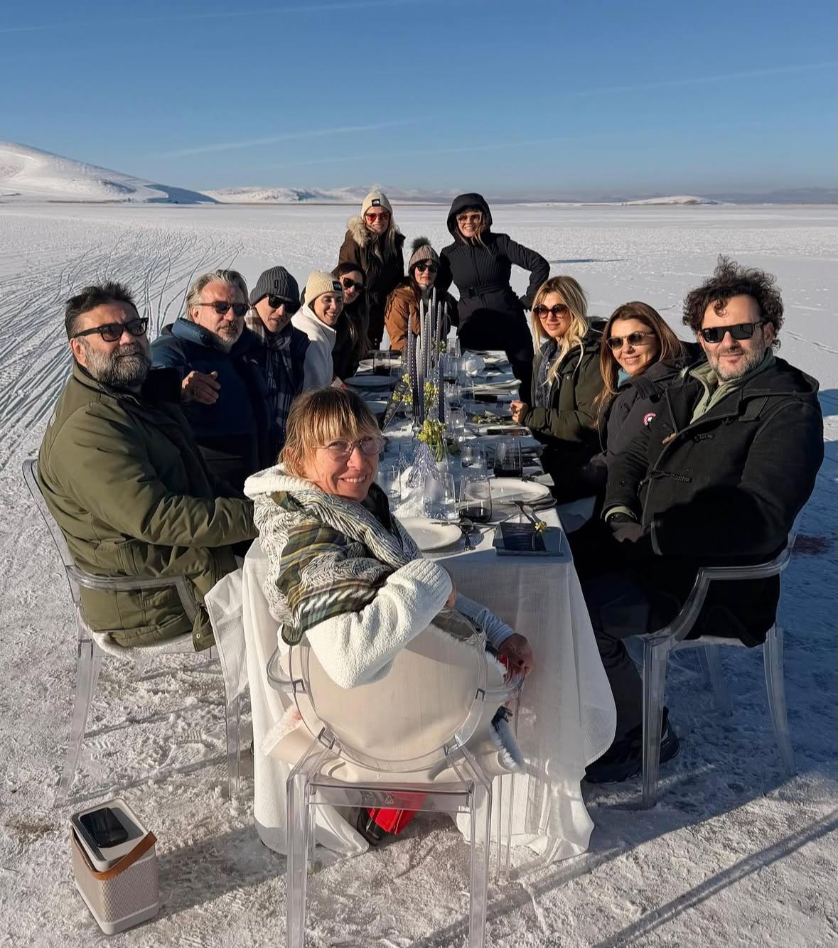 Etkinliğin finali ise dikkat çekici bir deneyimle tamamlandı. Donmuş Çıldır Gölü’nün üzerine kurulan özel sofrada yemek yiyen Sabancı, sıra dışı anları takipçileriyle paylaştı.