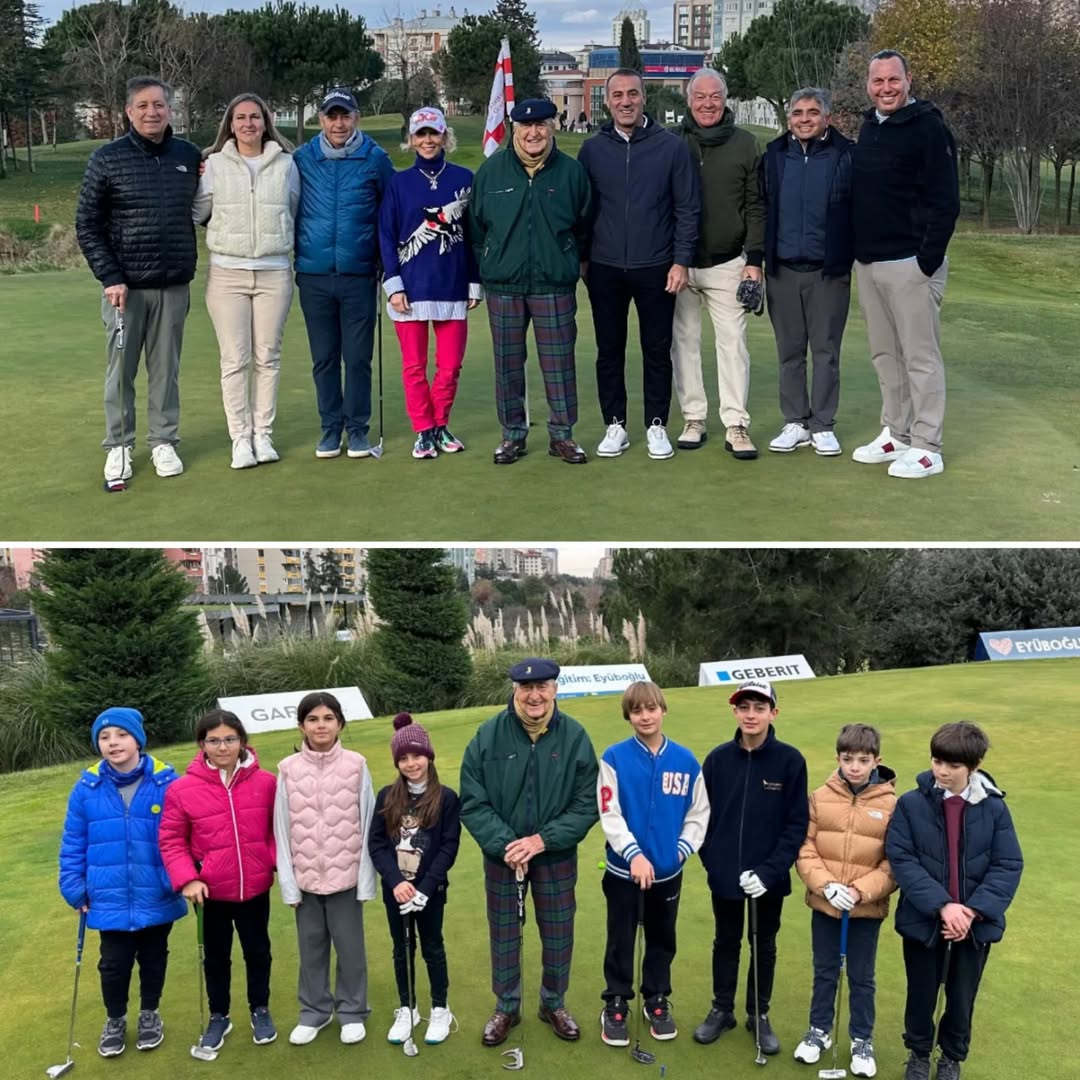 Koç Holding Onursal Başkanı Rahmi Koç, minik golfçülerle sohbet edip fotoğraf çektirdi. Rahmi Koç şıklığı ile de dikkat çekti.