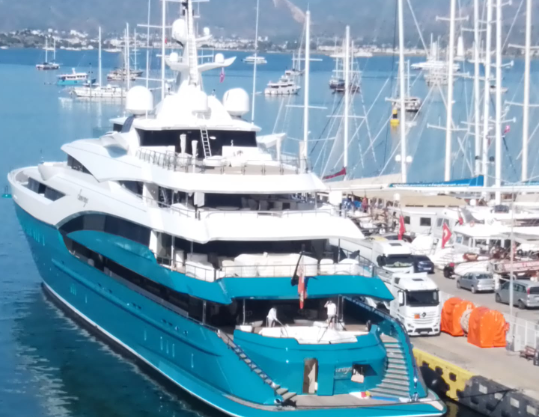 Hintli milyarder Ravi Ruia’ya ait 150 milyon dolar değerindeki “Sunrays” isimli mega yat, yakıt ikmali için Fethiye’ye demirledi.