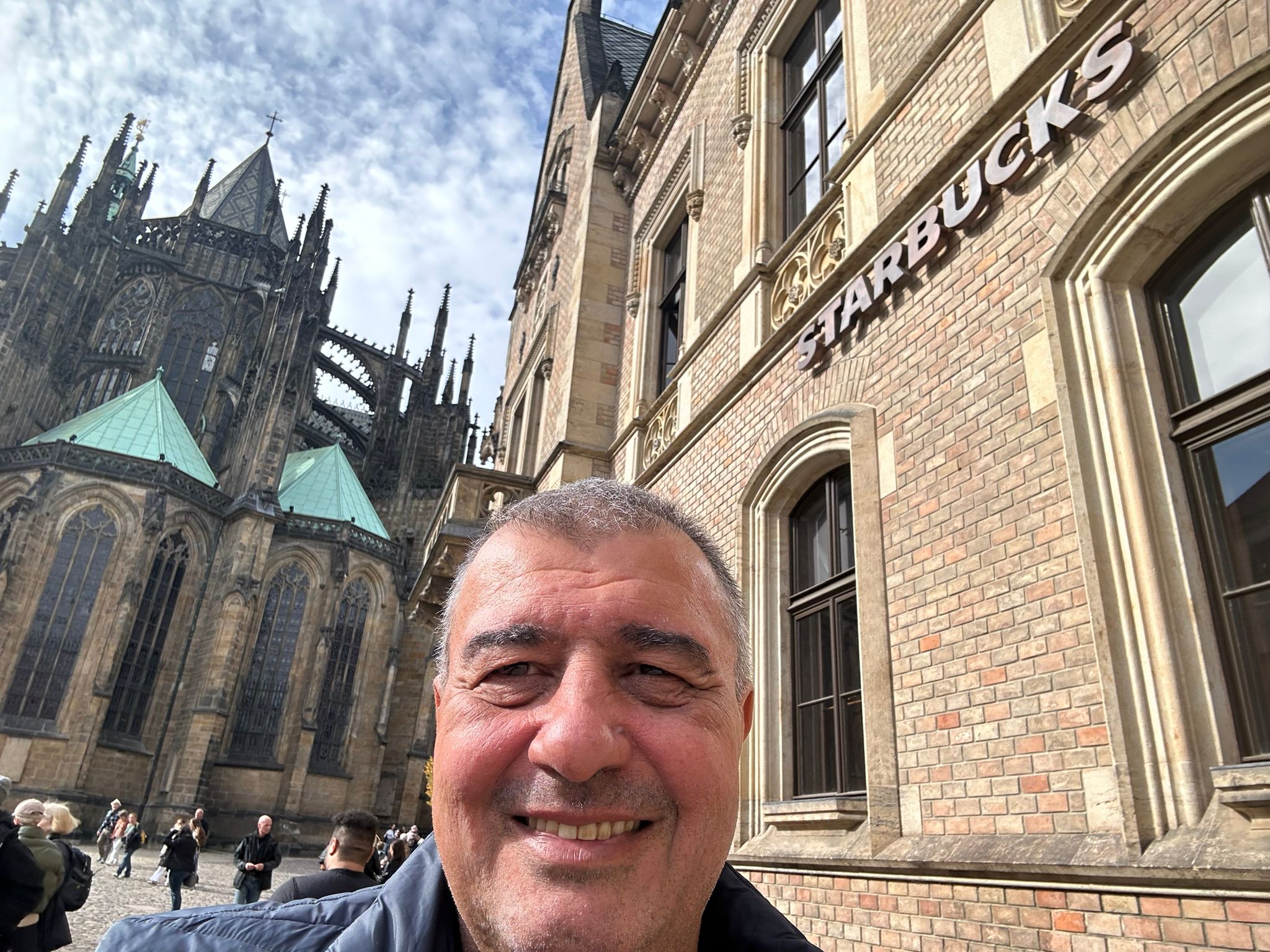 St. Vitus Katedrali’nin gölgesinde bir Starbucks…