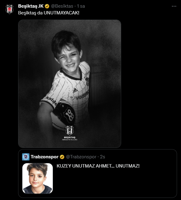 Bir süre sonra Beşiktaş, Trabzonspor'un paylaşımını alıntılayarak ve Ahmet Minguzzi'nin Beşiktaş formalı fotoğrafını da ekleyerek "Beşiktaş da unutmayacak!" paylaşımı yaptı.