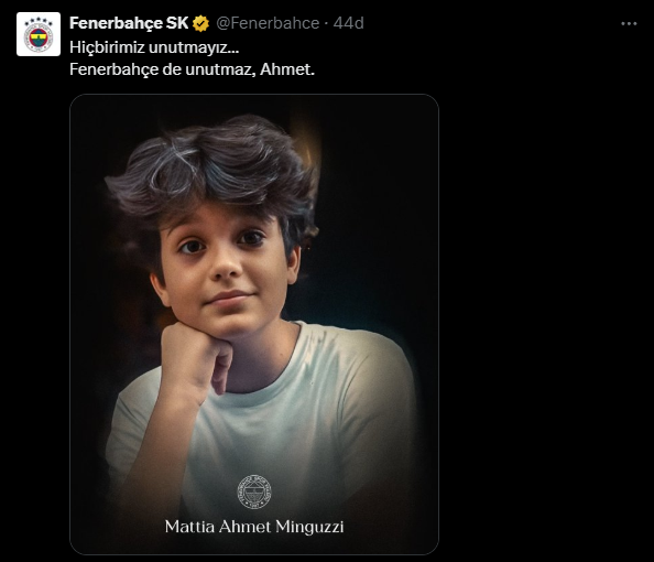 Trabzonspor, Beşiktaş, Fenerbahçe ve Galatasaray kulüpleri, bıçaklanarak öldürülen Mattia Ahmet Minguzzi'nin karar duruşmasının ardından paylaşımda bulundu ve 'Unutmayacağız' mesajı verdi.