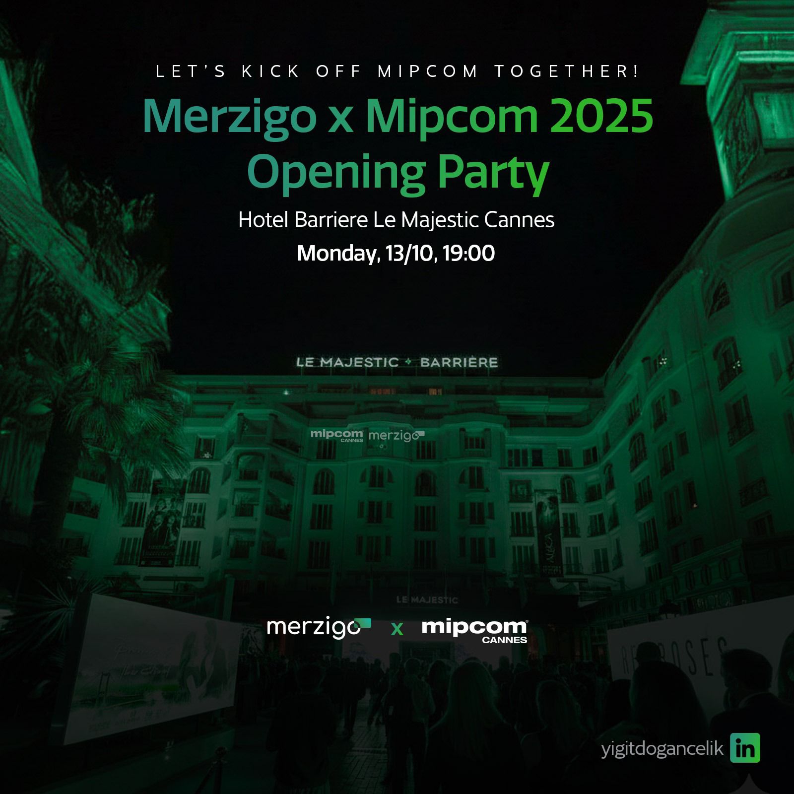 Bu yılın en dikkat çeken katılımlarından biri ise, Türkiye’nin dijital yayıncılık alanındaki gururu Merzigo oldu. Dünyanın en büyük video gelirleştirme ve teknoloji şirketlerinden biri olan Merzigo, bu yıl MIPCOM’da tarihî bir adım atarak fuarın resmî açılış galasının organizatörü oldu. “Merzigo x MIPCOM 2025 Opening Party”, 13 Ekim akşamı Cannes’ın simge yapılarından Hotel Barrière Le Majestic’te gerçekleşecek. 2000’e yakın davetlinin katılacağı bu özel geceye, BBC Studios, Disney, Paramount, Warner Bros. Discovery, Lionsgate, ITV Studios gibi dünya devlerinin üst düzey yöneticileri ve dünyaca ünlü oyuncular katılacak.