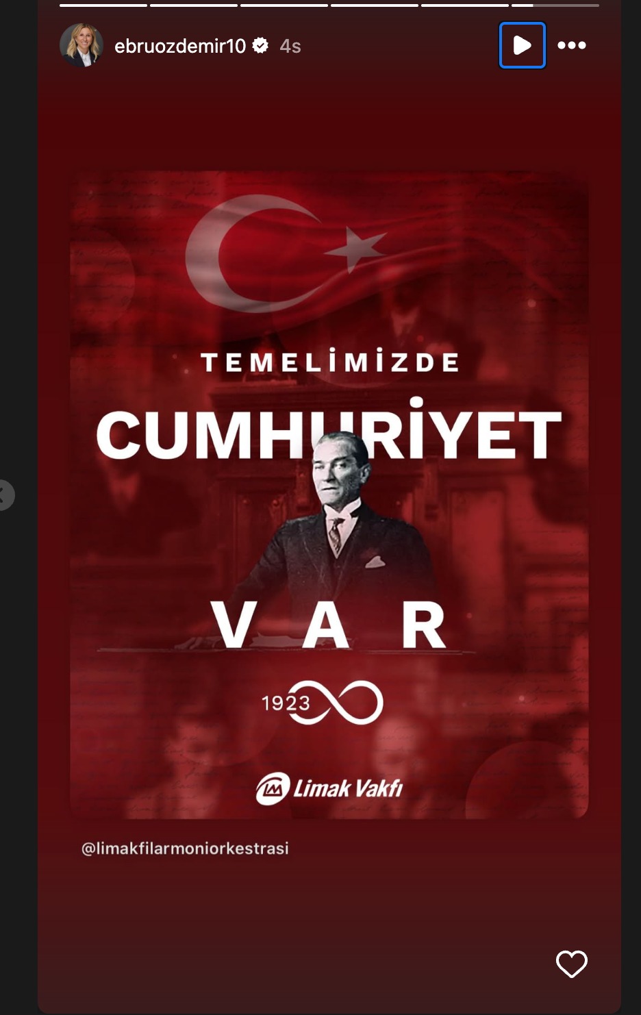 Limak Yönetim Kurulu Başkanı Ebru Özdemir de sosyal medya hesabında “Temelimizde Cumhuriyet Var" yazan bir paylaşımda bulundu.
