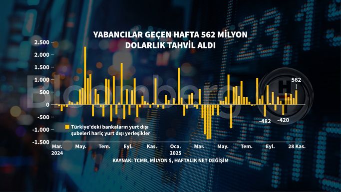 Yabancı yatırımcının net tahvil alımı da 28 Kasım haftasında 562 milyon dolar oldu.