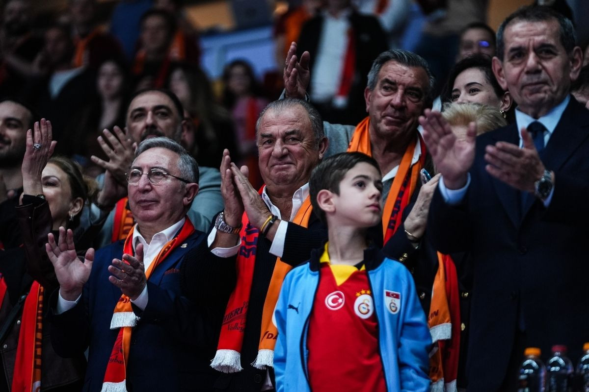 Türkiye Voleybol Federasyonu Başkanı Mehmet Akif Üstündağ, Galatasaray Kulübü Başkanı Dursun Özbek ve teknik direktör Fatih Terim, müsabakayı salonda takip etti.