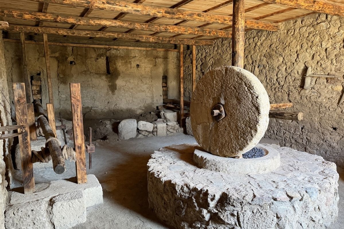 "Bakanlığımıza bu bulguların belgelerini ve verilerini paylaştıktan sonra, burayı yeniden ayağa kaldırarak, gelen ziyaretçilere zeytinyağı üretimini göstermek amacıyla çalışma yaptık. Burada zeytinler işliklerde kırılıyor, pres bölümüne götürülüyor, ahşap kollar ve mekanizmalar yardımıyla zeytinyağı sıkılarak kaplara biriktiriliyor. Daha sonra çeşitli aletlerle diğer depolama kaplarına aktarılıyor."